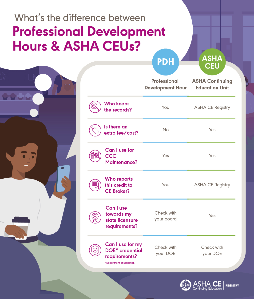 What are the differences between PDHs and ASHA CEUs? Can you earn either or both? Which credit is right for you? Find out which is the best fit for documenting your professional development requirements!
